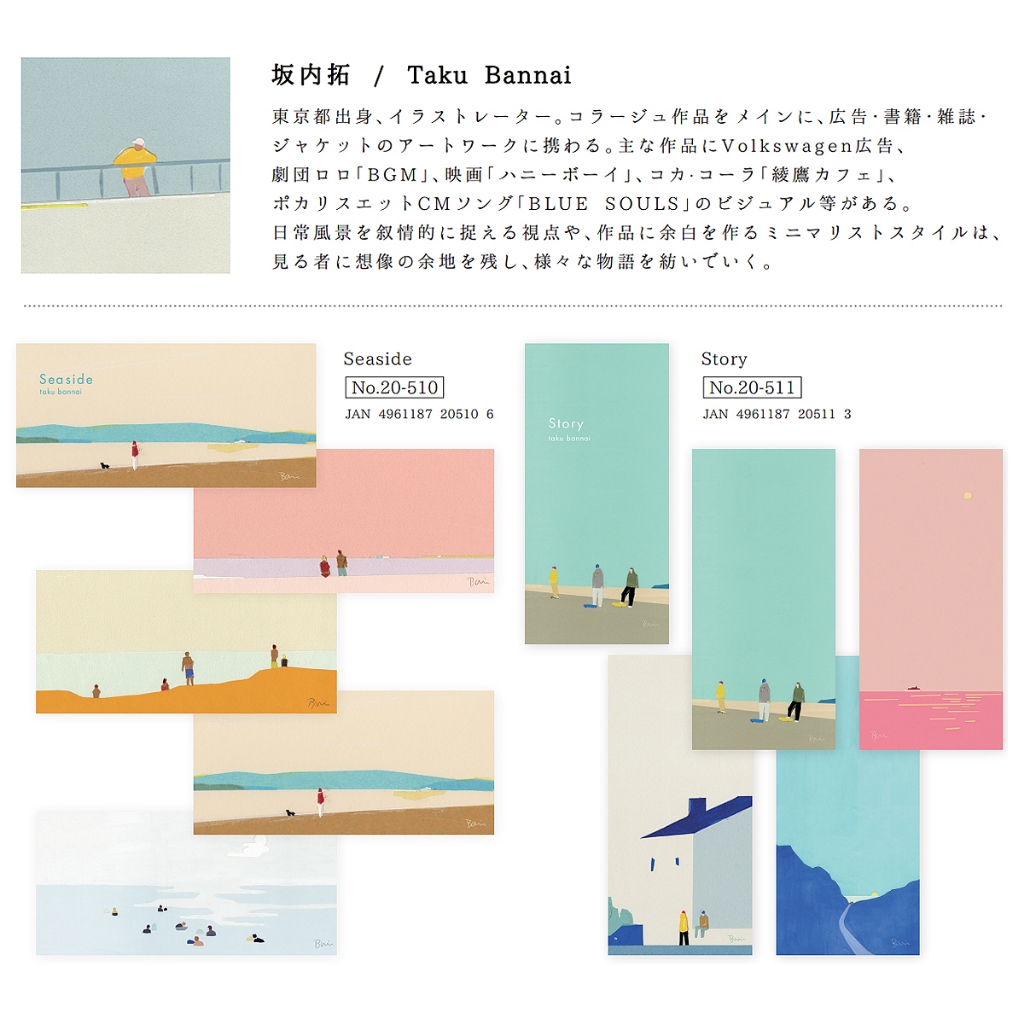表現社 x Taku Bannai 坂内拓 2025秋季 美濃和紙一筆箋 共2款 ( 20-510、205-11 )( 20-510 ) 海濱|( 20-511 ) 故事Memo & Sticky Notes小徑文化|擁有最多mt和紙膠帶的購物網站