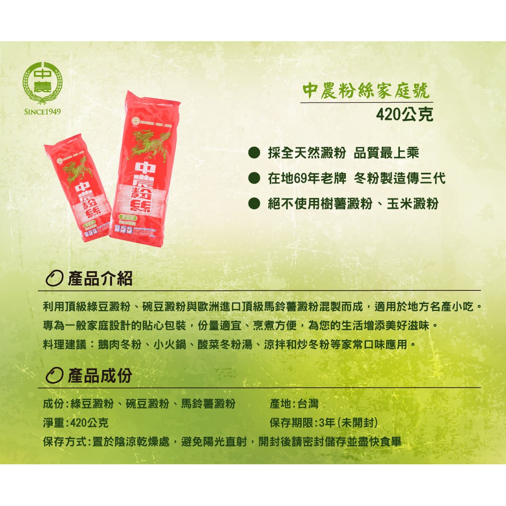 【中農粉絲】中農牌家庭號粉絲420g1包(超商最多4包)|3包9折優惠(超商最多1組)Noodles中農粉絲 你我的fans