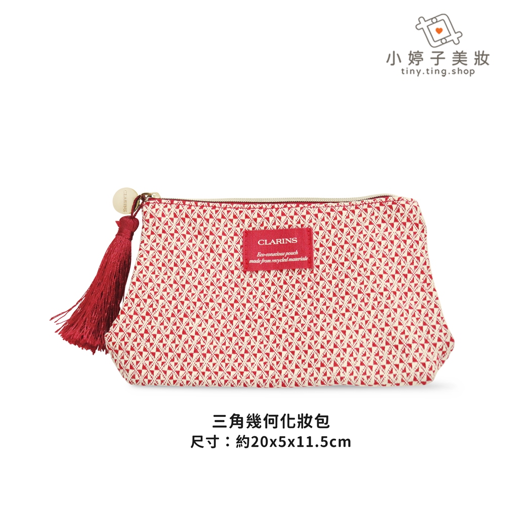 Clarins 克蘭詩 化妝包 / 收納包 小婷子美妝三角幾何化妝包|白紅化妝包|編織梯形化妝包|城市倒影圓形|眼唇造型牛仔|橘色編織化妝包|紅色格紋化妝包|紅色絨布化妝包Makeup Accessories小婷子美妝