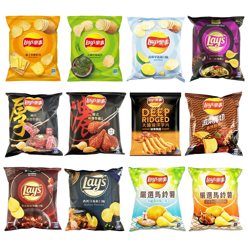 Lay’s樂事 洋芋片系列 薯片香濃起司岩燒海苔青檸香烤肋排椒香嫩雞波浪洋芋片嚴選馬鈴薯牛排綠咖哩照燒厚切-香酥雞腿 34g|碳烤肋眼牛排佐松露口味 34g|神戶厚切牛排 34g|青檸享清新 34g|厚切-香烤肋排 34g|大波浪-椒香嫩雞 30.5g|厚切-照燒烤雞串 34g|瑞士香濃起司 34g|岩燒海苔 34g|頂級日曬甘味湖鹽 34g|瑪莎曼牛肉口味 28g|麻婆燒豆腐口味 28g|美國經典原味 34g|勁辣唐辛子 34g|北海道奶香焗烤 34g|極品香煎干貝口味34g|純味-無添加鹽32g|炙鹽香蒜口味32g|韓式蜂蜜芥末口味32gChips & Crisps中聯興家庭五金批發