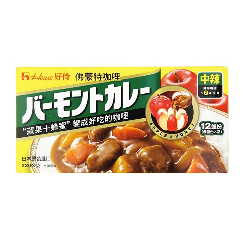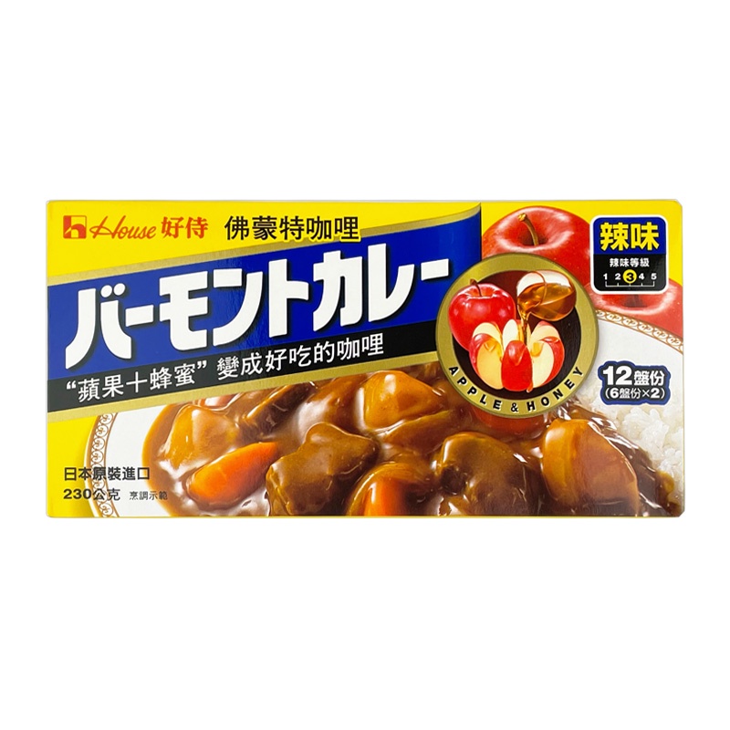 好侍佛蒙特咖哩塊230g (12盤份)(甜味/中辣/辣味) 咖哩調味 咖哩塊 料理咖哩 調味咖哩甜味 (辣度1|中辣 (辣度2|辣味 (辣度3Cooking Paste & Kit中聯興家庭五金批發