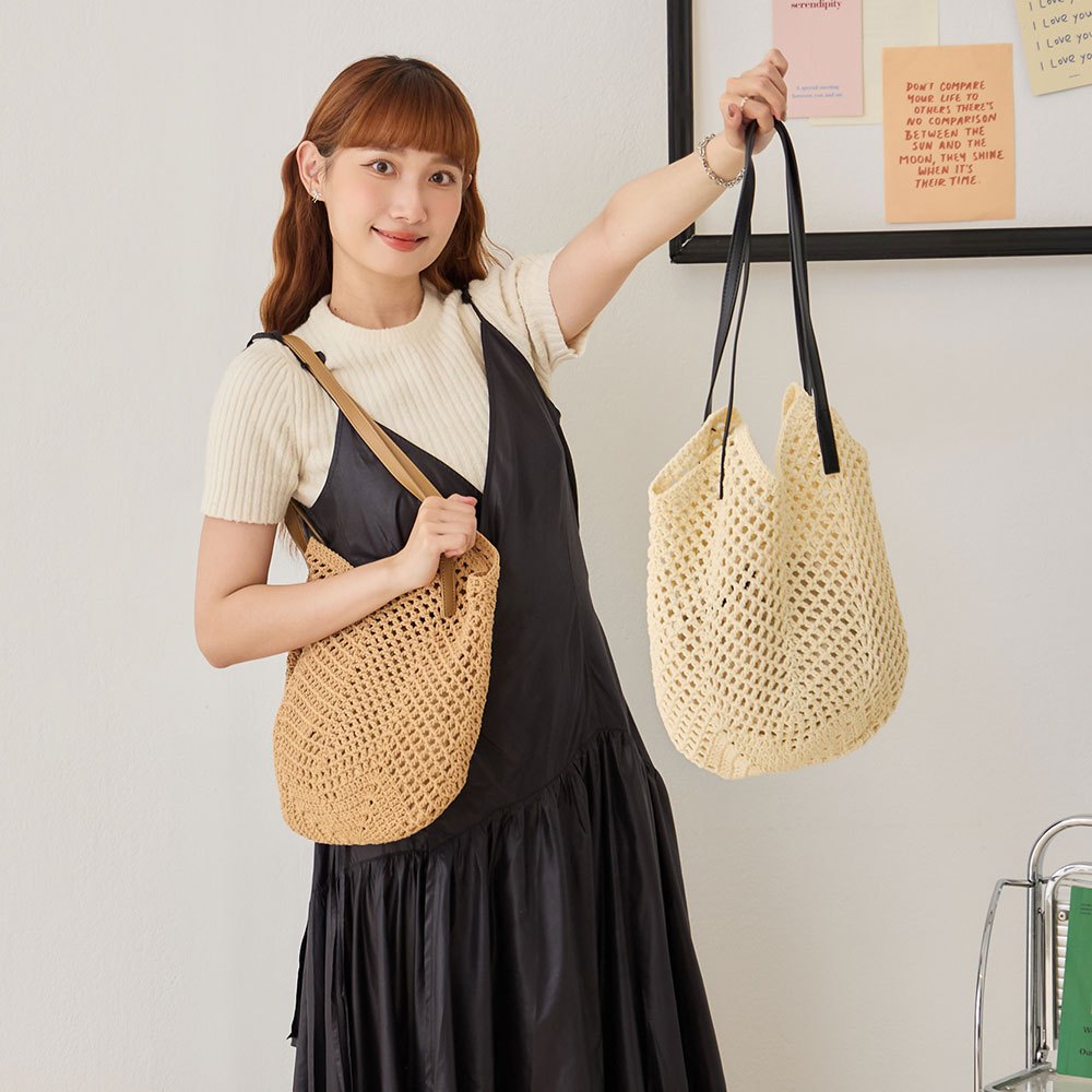 天藍小舖-愜意午後編織簍空肩背包中包-共3色-A17175088杏色|棕色|黑色天藍小舖 SkyBlue