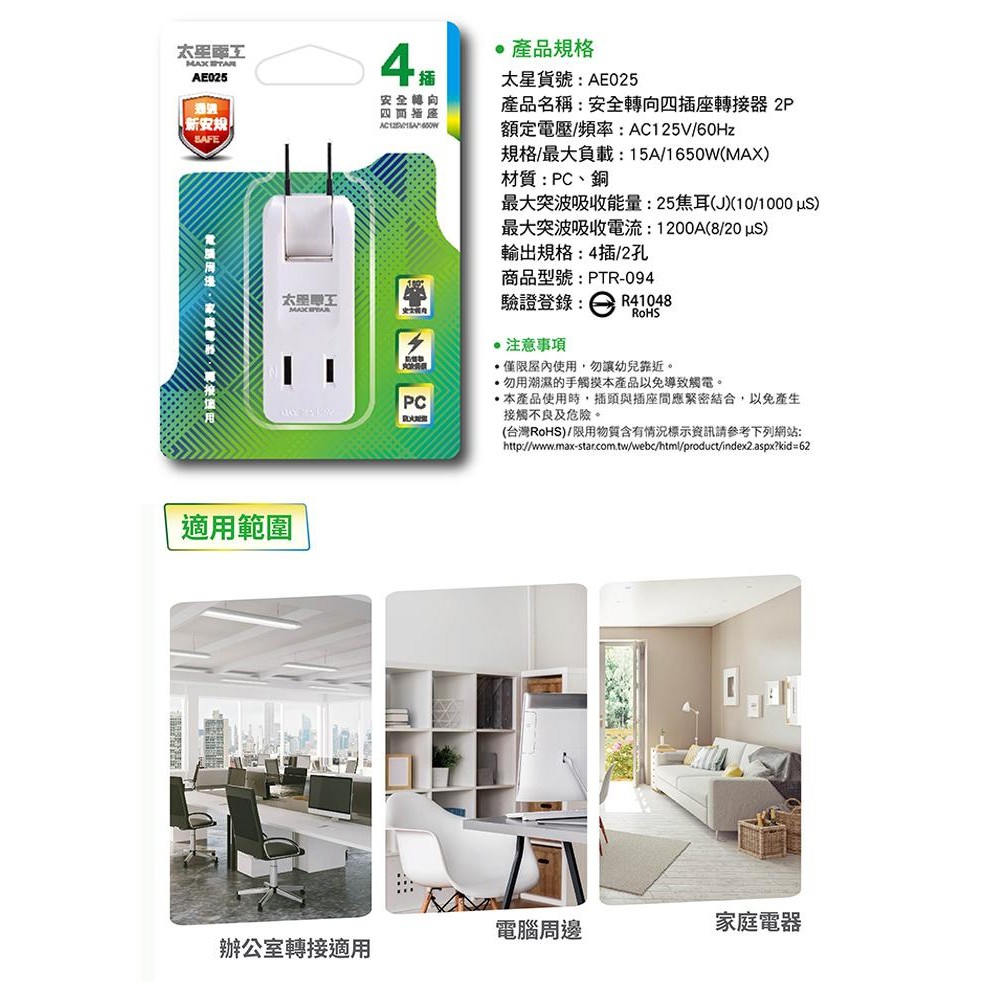 太星電工 安全轉向四插座轉接器2P AE025太星電工 安全轉向四插座轉接器2P AE025Construction Materials中聯興家庭五金批發