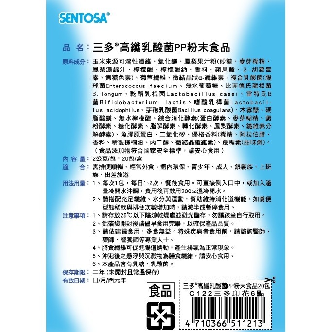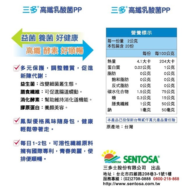 三多 高纖乳酸菌PP粉末食品20包/盒【仁仁藥局】三多 高纖乳酸菌PP粉末食品20包/盒【仁仁藥局】Weight Management仁仁藥局線上購物