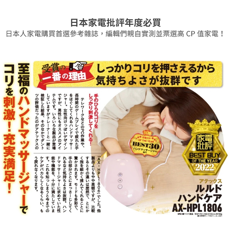 ATEX Lourdes煥采溫熱手指手部按摩器AX-HPL1806(新版站立款/有線款)|官方旗艦館新版白色1806WH|新版粉色1806PK|限時特賣-白色|限時特賣-粉色Massage & Therapy Devices日本ATEX官方旗艦館