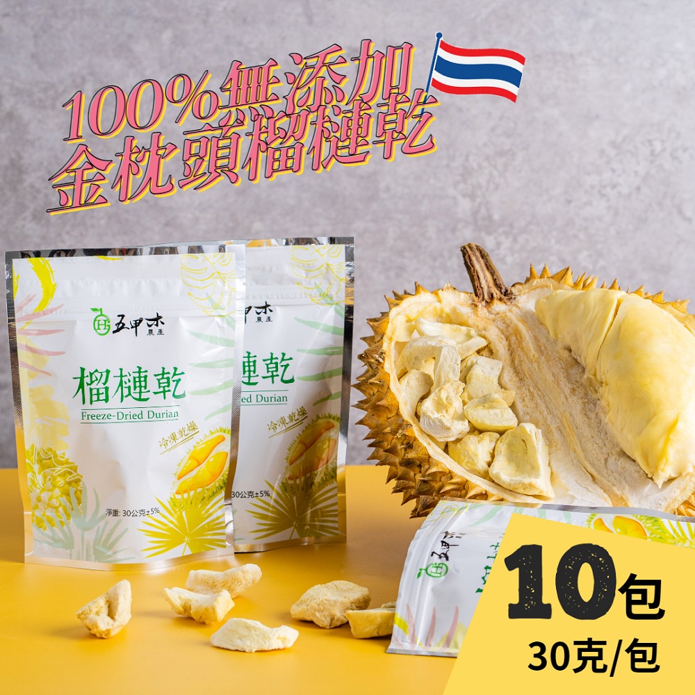[五甲木]冷凍乾燥金枕頭榴槤乾 (30克x10包)榴槤乾10包組Dried Snacks五甲木農產