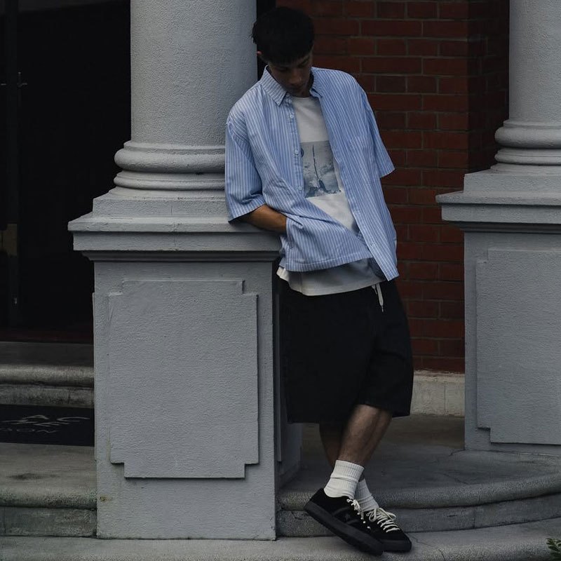 IDEALISM ID25024-BL STRIPE SHIRT 寬短版 短袖襯衫 (藍白條紋) 化學原宿藍白條紋,M|藍白條紋,LShirts化學原宿 Chemistry