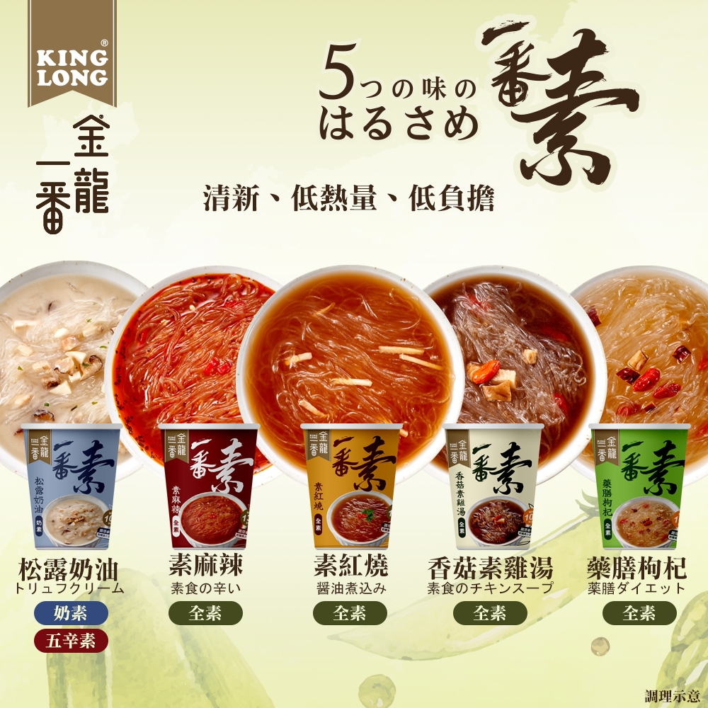 【KingLong】金龍一番-一番素系列-杯冬粉素紅燒|素香菇雞|素麻辣|素藥膳枸杞|素松露(奶素)Instant Noodles中農粉絲 你我的fans