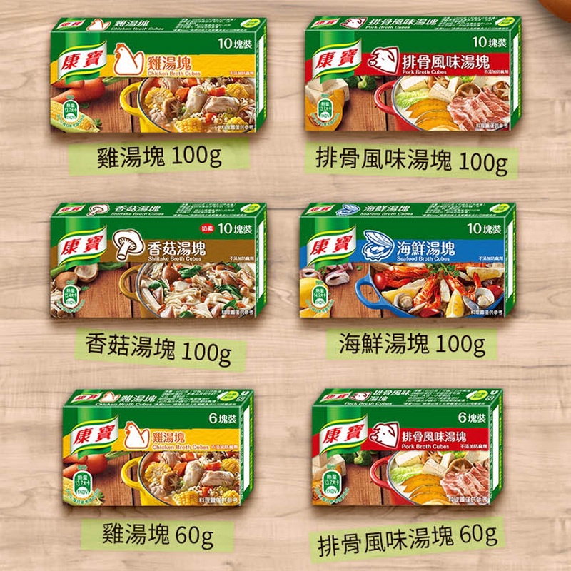 康寶 海鮮湯塊/雞湯湯塊/香菇湯塊/排骨風味湯塊 調味湯塊 湯底包 湯底粉 湯塊包雞湯塊 10塊x10g|排骨風味湯塊 10塊x10g|香菇湯塊 10塊x10g|海鮮湯塊 10塊x10g|雞湯塊 6塊x10g|排骨風味湯塊 6塊x10gStock, Gravy & Instant Soup中聯興家庭五金批發