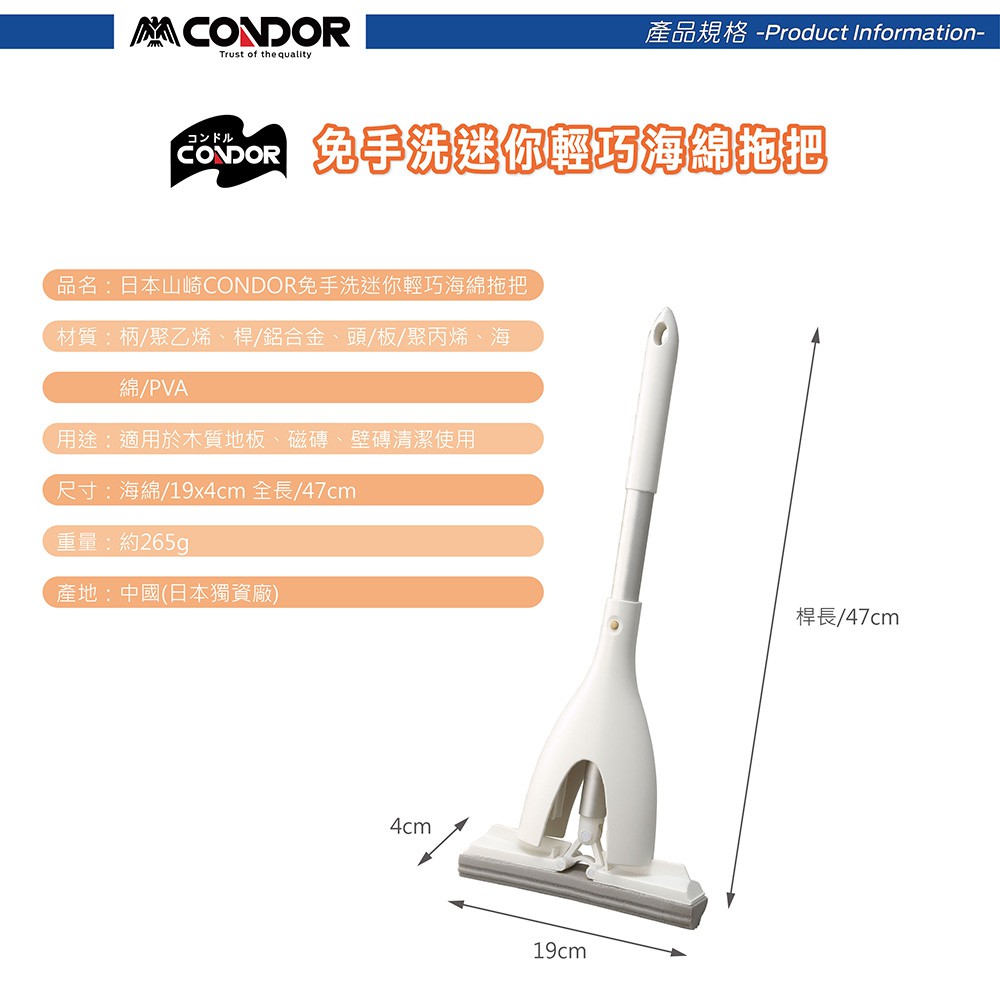 【日本山崎】CONDOR免手洗迷你輕巧海綿拖把/不沾手拖把【日本山崎】CONDOR免手洗迷你輕巧海綿拖把/不沾手拖把Mops日本山崎 CONDOR 台灣旗艦店