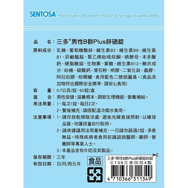 三多 女性B群PIUS鐵美錠 男性B群 薑黃鋅 芝麻鎂 60錠/盒【仁仁藥局】 B群 鐵鎂錠 鋅晒錠女性B群PIUS鐵美錠60錠|女性芝麻鎂複方錠60錠|男性B群PLUS鋅晒錠60錠|男性薑黃鋅複方錠60錠Well Being仁仁藥局線上購物