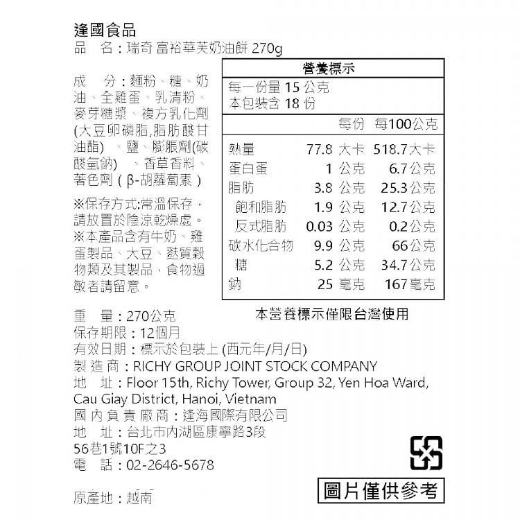 Richy 瑞奇 富裕華芙奶油餅(270g) 零食 零嘴 餅乾 休閒美食 點心 下午茶 酥脆【小三美日】DS025105單一Biscuits, Cookies & Wafers小三美日