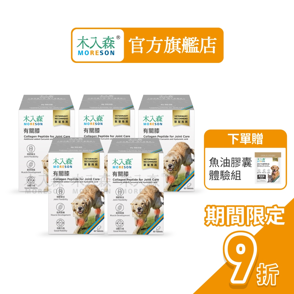【木入森】犬寶有關膝 (60顆x5盒)|狗狗關節保健食品|胜肽膠原蛋白 玫瑰果萃取|給予狗關節保護力60顆x5盒入|60顆x5盒+狗固齒麗x1+萌寵提袋x1|60顆x5盒+狗固齒麗x1+狗潔牙錠x1Vitamins & Supplements木入森Moreson 官方旗艦店