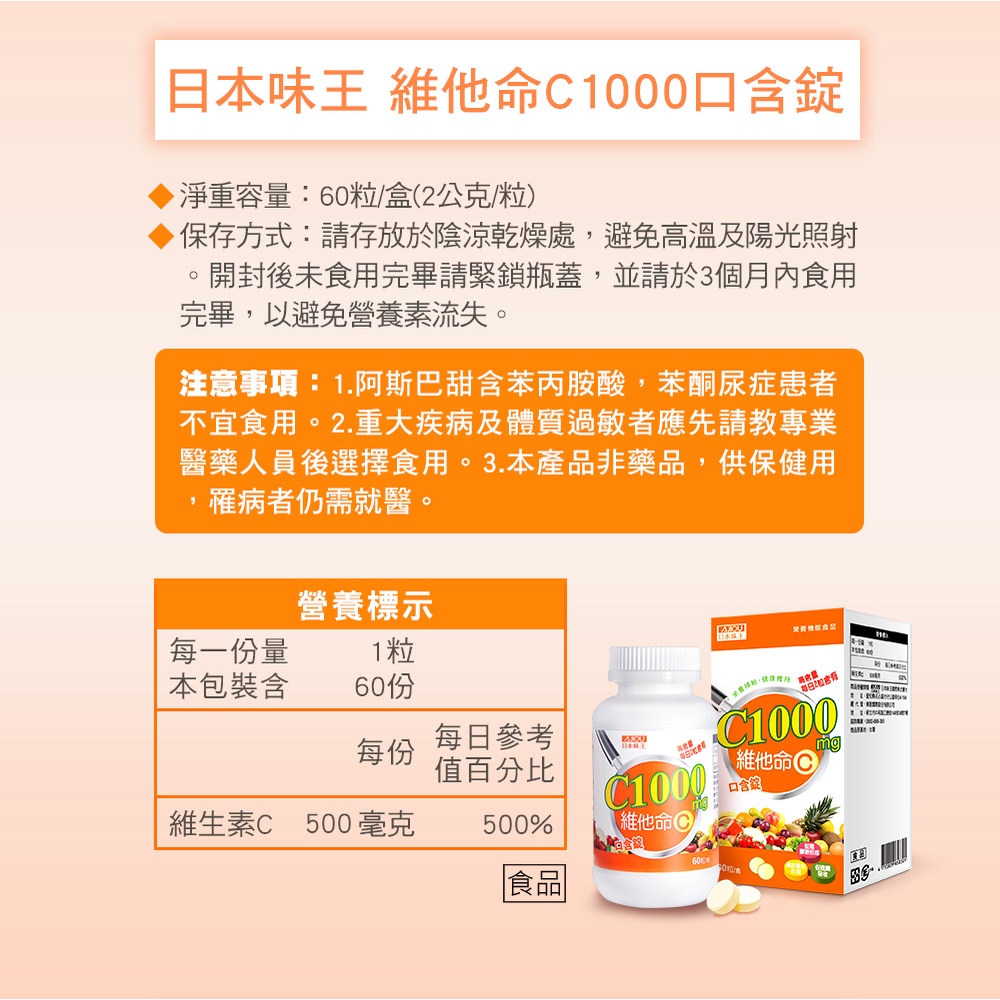日本味王 維他命C1000口含錠60粒X4盒【官方直營店】