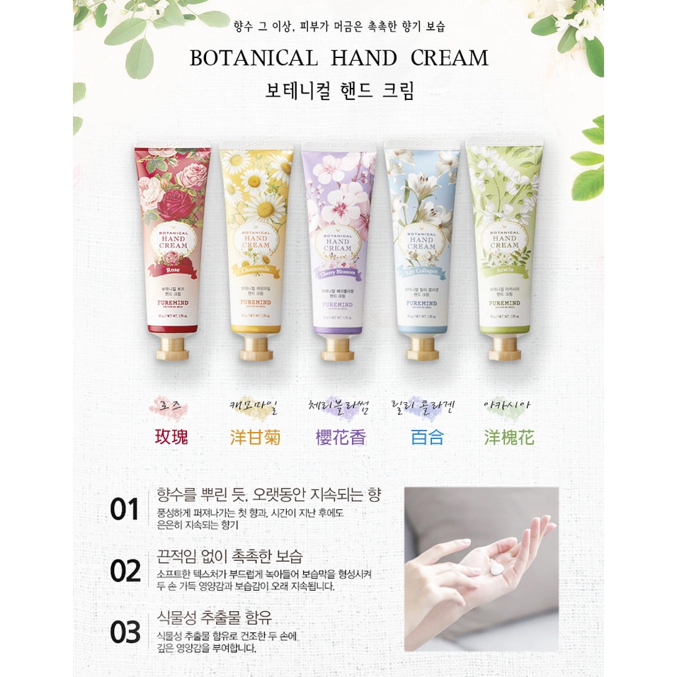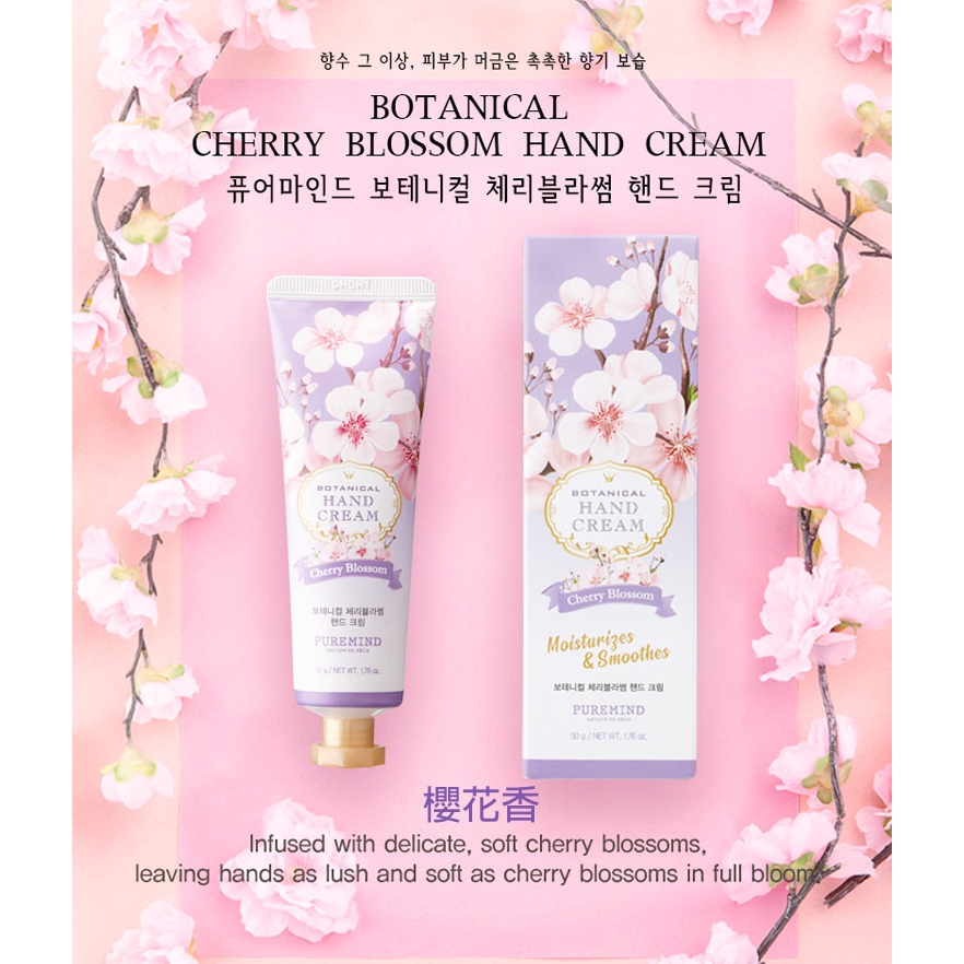 韓國 PURE MIND 植物香氛護手霜(50g) 韓國護手霜 平價保養 滋潤雙手 護手霜【小三美日】D810727玫瑰|百合|洋槐花|櫻花香|洋甘菊Hand Care小三美日