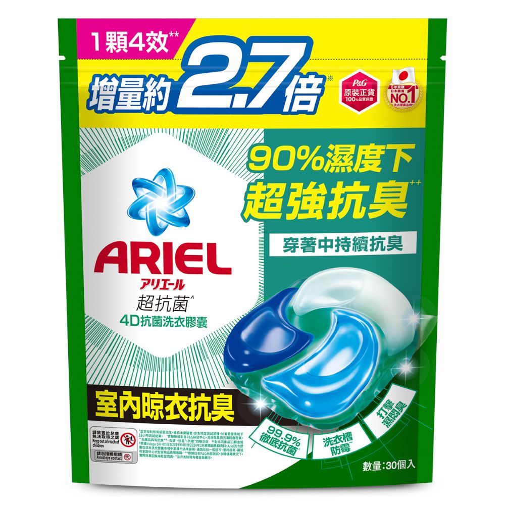 ARIEL抗菌洗衣膠囊4D袋裝30顆 抗菌去漬 室內晾衣自然微香|室內晾衣|頑固污漬Laundry Care日藥本舖 官方直營店