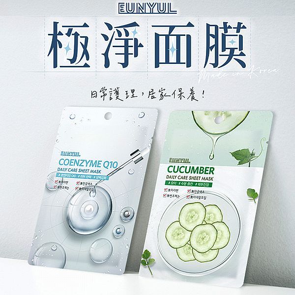 【EUNYUL】極淨面膜22ml|韓國 口碑熱銷 熱賣 DS013370積雪草22ml|維他命C-22ml|白藜蘆醇22ml|玫瑰胜太22ml|蘆薈22ml|膠原蛋白22ml|Q10-22ml|玻尿酸22ml|小黃瓜22ml|珍珠22mlFace Mask & Packs小髮廊 Hair Salon