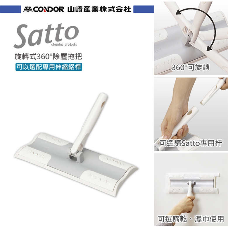 免運超值組【日本山崎】Satto 立體除塵拖把超值組合/立體除塵拖巾*3/平板360°拖把/鋁管伸縮桿免運超值組【日本山崎】Satto 立體除塵拖把超值組合/立體除塵拖巾*3/平板360°拖把/鋁管伸縮桿Mops日本山崎 CONDOR 台灣旗艦店