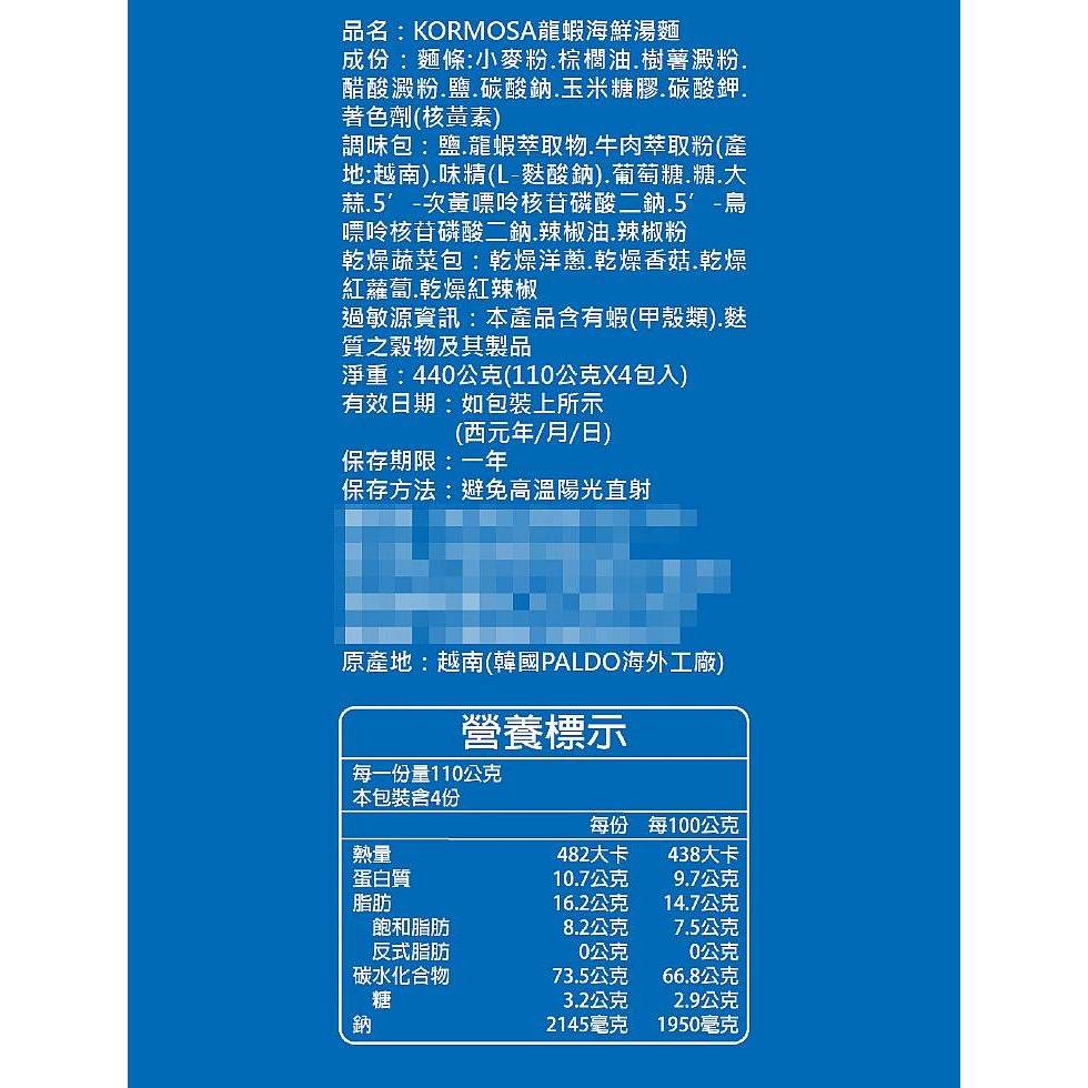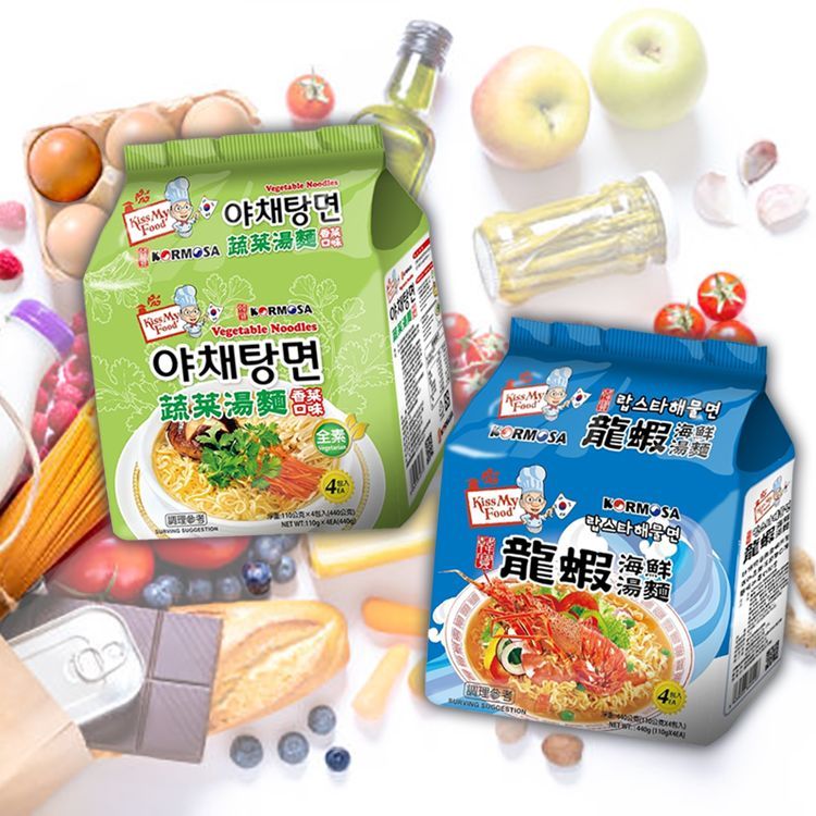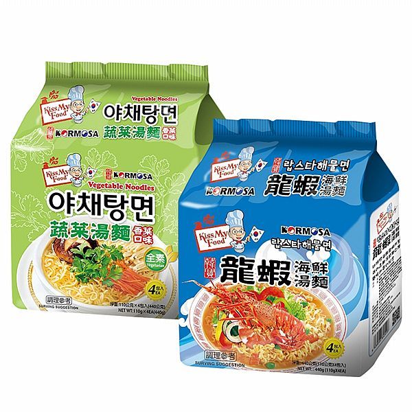 韓國 KORMOSA 湯麵 龍蝦海鮮/蔬菜(香菜口味)全素(110gx4包) 款式可選【小三美日】DS019505龍蝦海鮮湯麵|蔬菜湯麵(香菜口味)全素Instant Noodles小三美日