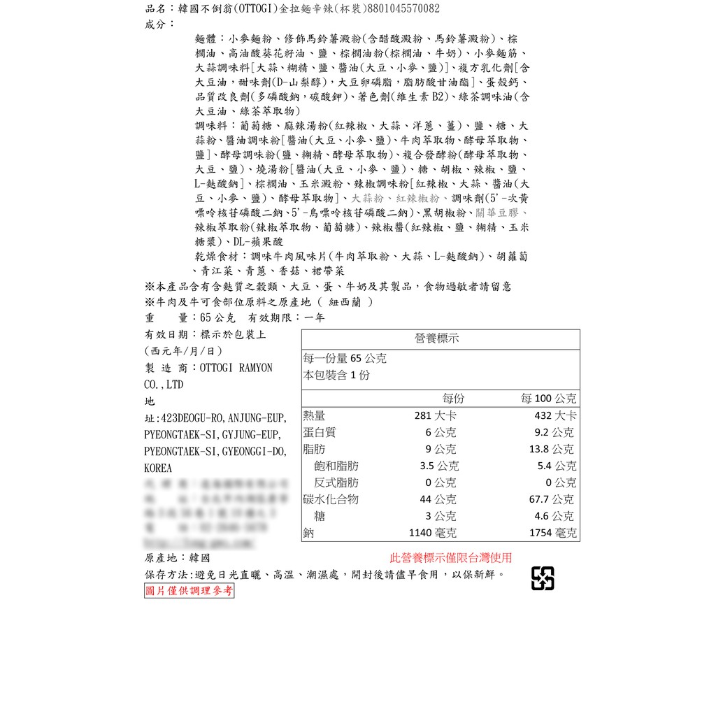 韓國 不倒翁 金拉麵 杯麵 (1杯裝) 原味/辣味 泡麵 團購 露營 宵夜 即食 便利麵【小三美日】D570068原味|辣味Instant Noodles小三美日