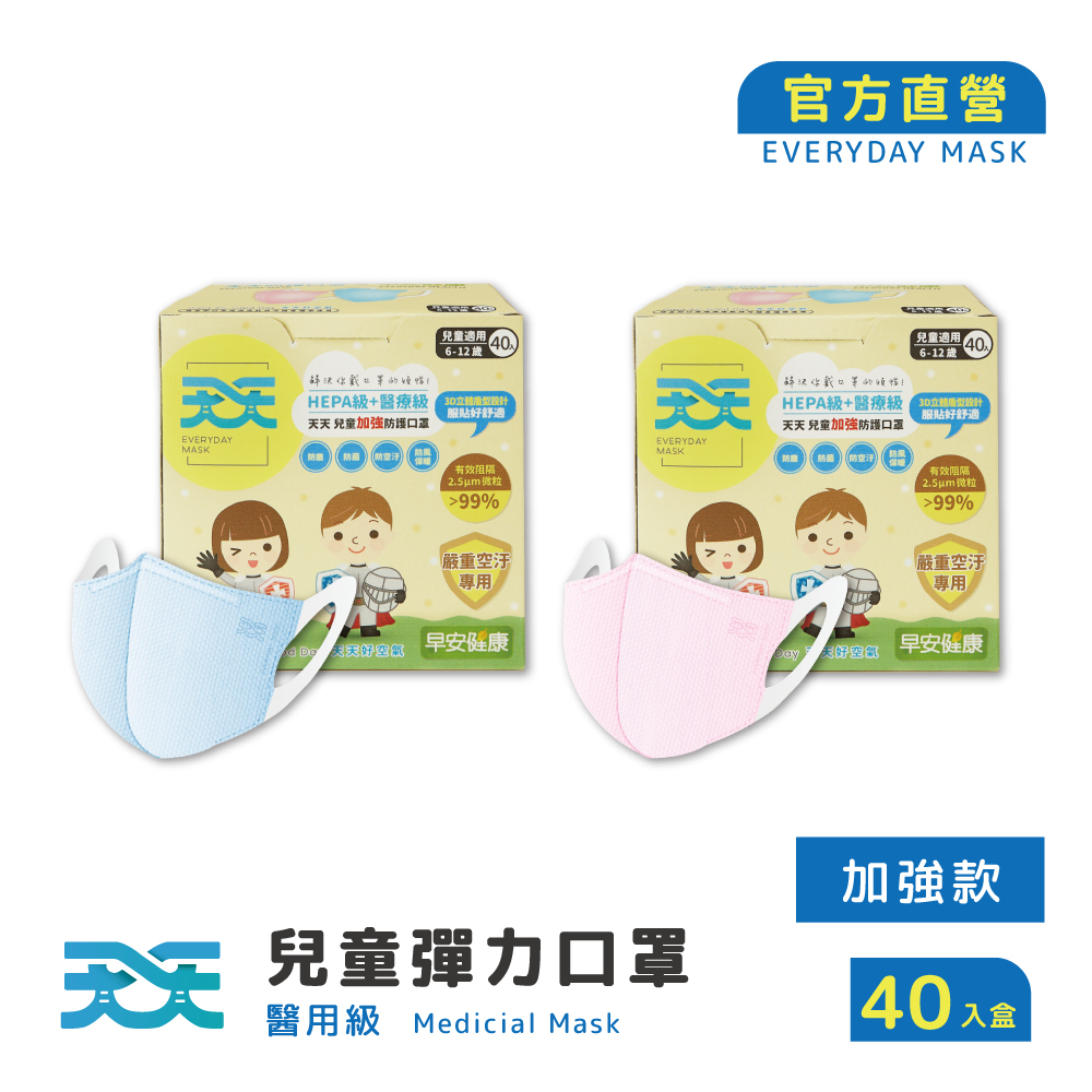 【天天】早安健康聯名 兒童立體醫用口罩,加強款,40入/盒(2色可選)藍色|粉色Medical Gloves & Masks天天防護口罩