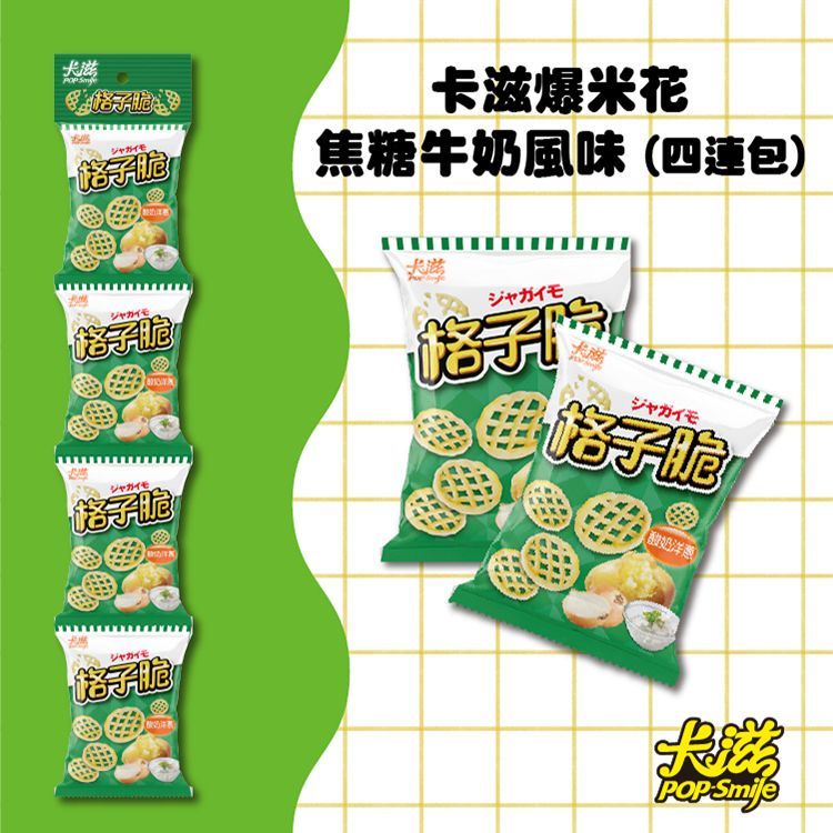 卡滋 焦糖牛奶風味爆米花/酸奶洋蔥格子脆/茄汁風味薯條(4包裝) 款式可選【小三美日】DS023913焦糖牛奶風味爆米花(全素)(四連包)|酸奶洋蔥格子脆(四連包)|茄汁風味薯條(四連包)Popcorn小三美日