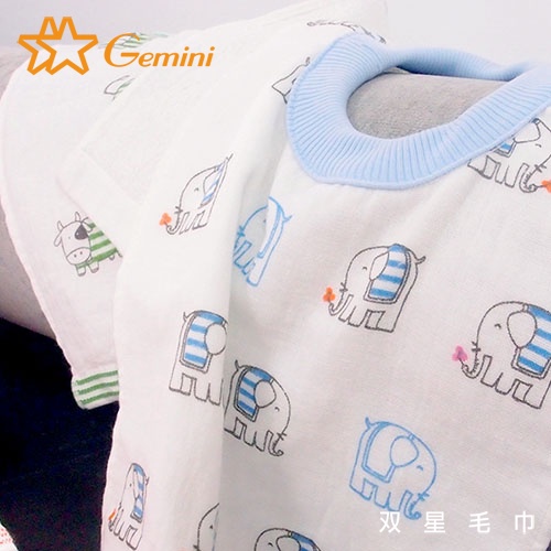 【双星毛巾Gemini】動物家族紗布圍兜|吸汗快乾|透氣舒適耐用|口水巾 吃飯巾|寶寶專用 毛巾布圍兜藍色(領口配色為隨機出貨)|綠色(領口配色為隨機出貨)|橘色(領口配色為隨機出貨)Bibs双星毛巾 Gemini Towel 品牌旗艦館
