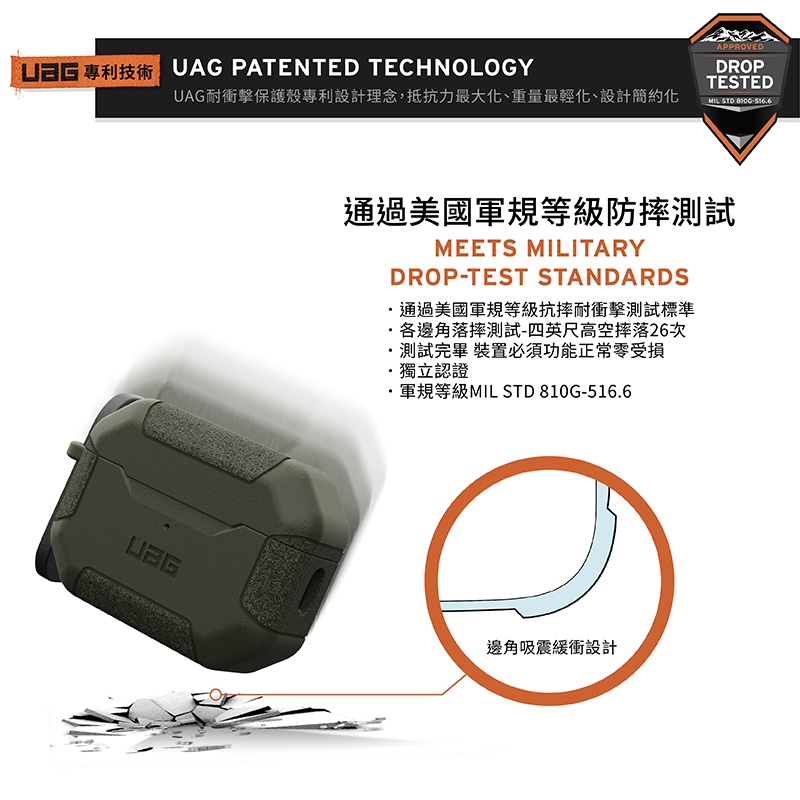 【UAG】AirPods Pro 2 耐衝擊防塵保護殼綠|橘|黑Wearable Accessories比比購商城