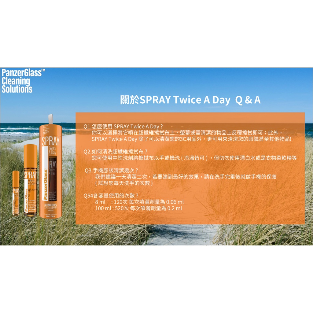 【PanzerGlass】SPRAY Twice A Day 天然抗菌螢幕清潔液8+100ml|8ml|100mlWearable Accessories比比購商城