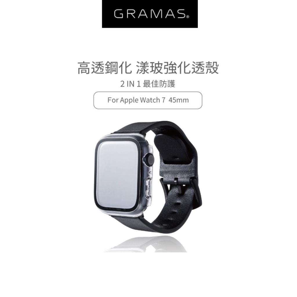 • 【日本Gramas】Apple Watch S7-S10 41/45/42/46mm 2 IN 1 高透鋼化漾玻保護殼