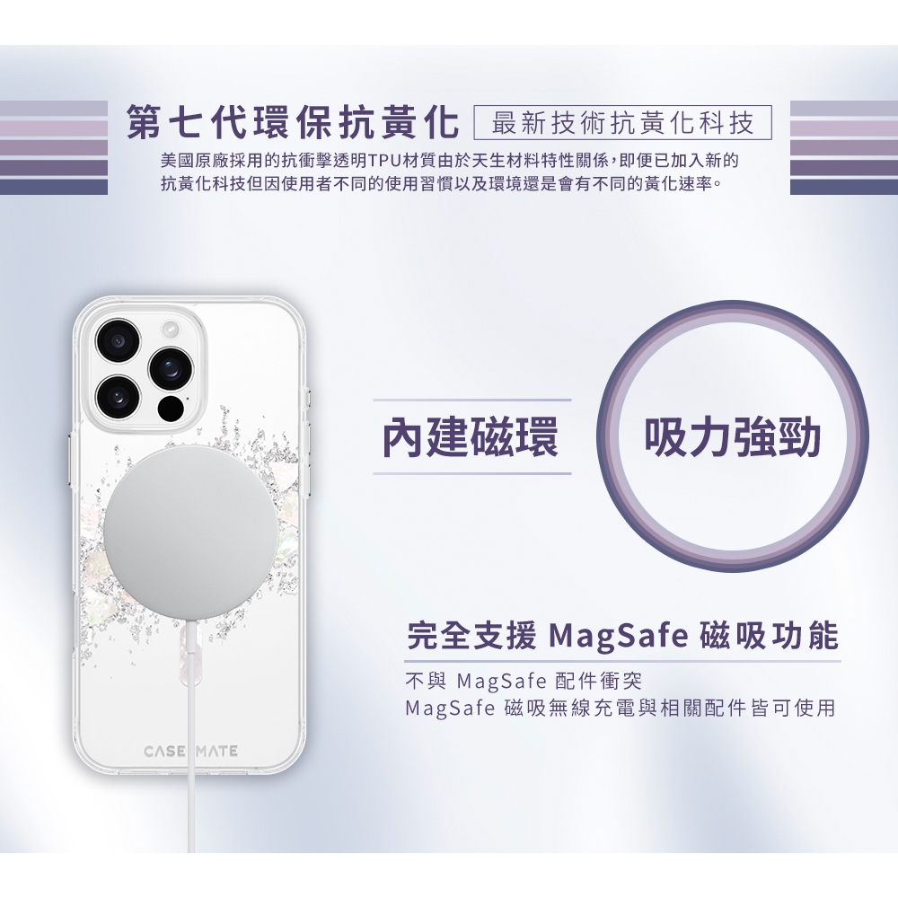• 美國Case-Mate iPhone 16 / 15 / 14 / 13璀璨珍珠/閃亮雷射抗菌防摔保護殼 MagSafe