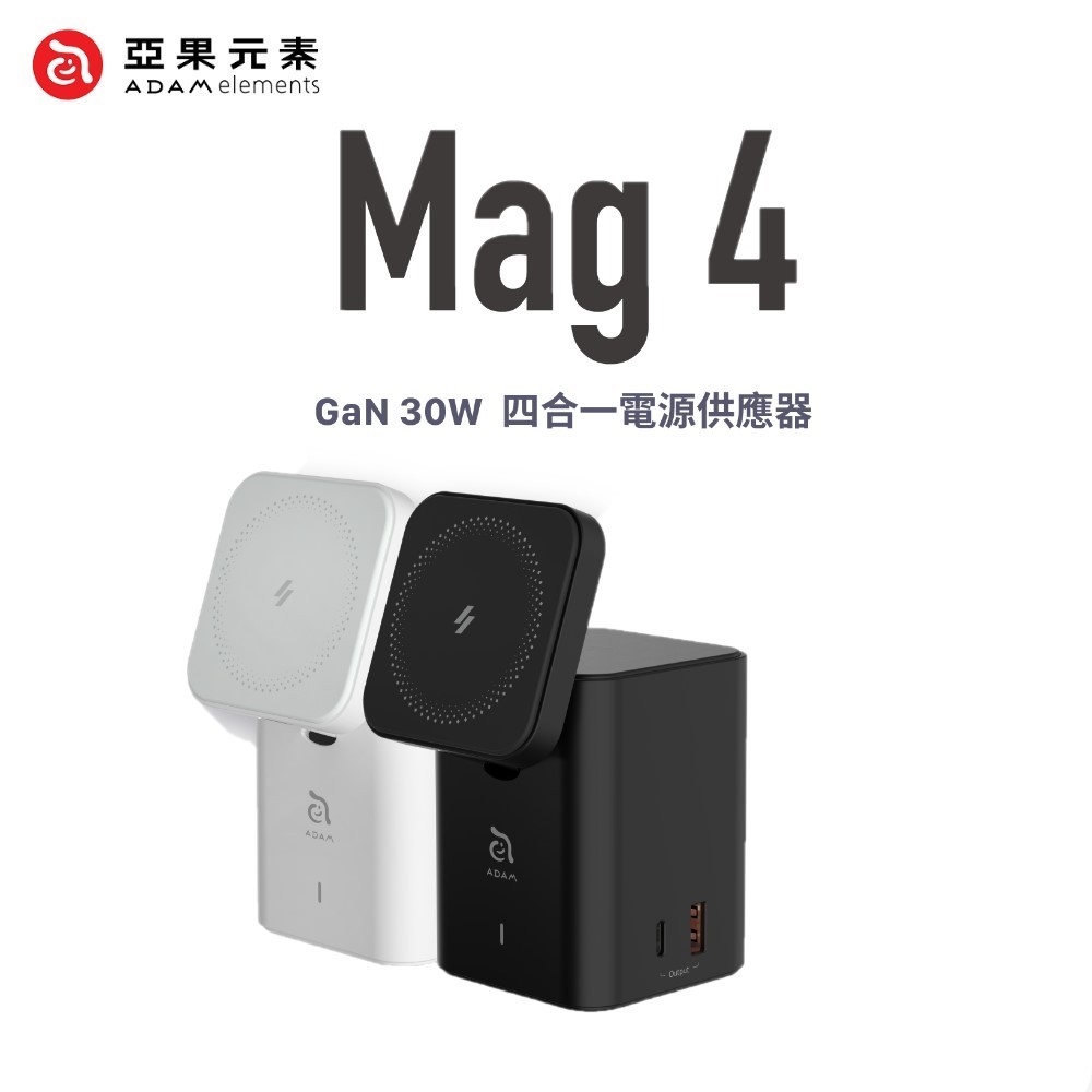 ADAM亞果元素 Mag 4 GaN 30W MagSafe磁吸無線充電四合一電源供應器 iPhone AirPods黑|白Cables, Chargers & Converters比比購商城