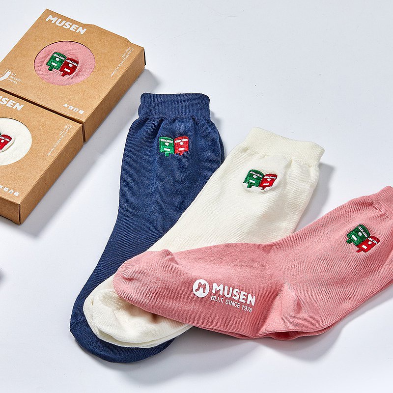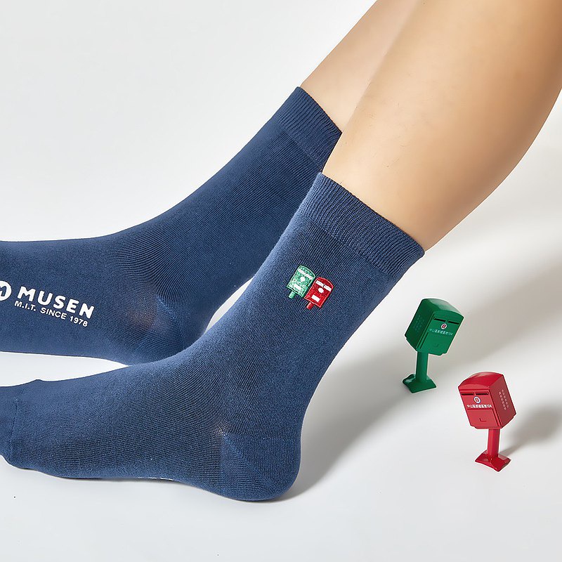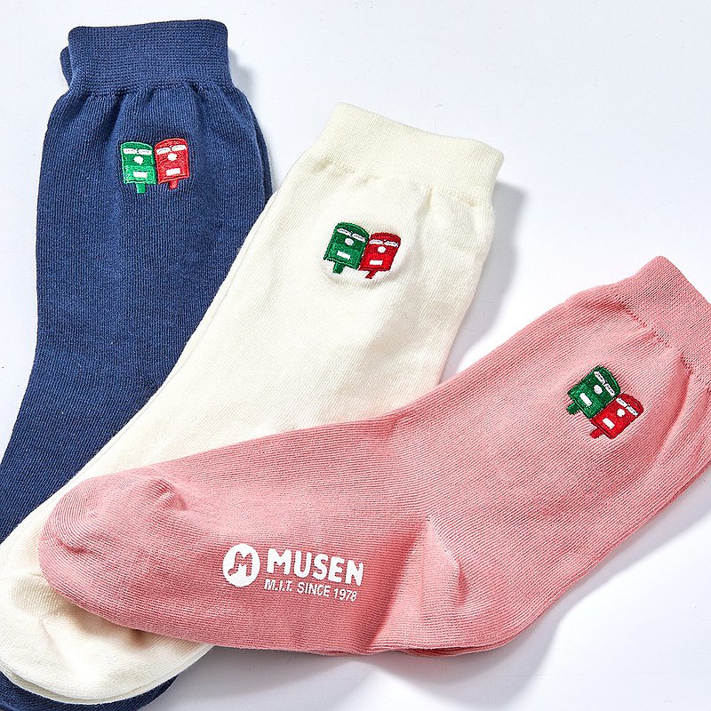 木森好襪 刺繡襪-郵筒 長襪|中筒襪|男女同款胭脂粉|宇宙藍|珍珠白Socks木森好襪 MUSEN SOCKS