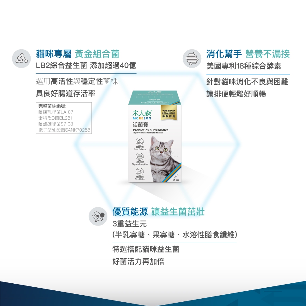 【木入森 新手貓奴必Buy】貓咪活菌寶30包+貓咪固齒麗30ml 貓咪消化道口腔保健組 貓咪益生菌貓咪活菌寶30包+貓咪固齒麗30mlVitamins & Supplements木入森Moreson 官方旗艦店
