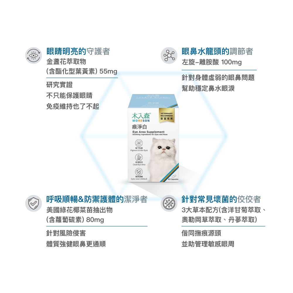 【木入森】貓咪痕淨白 (60顆)|貓咪眼睛保健食品|金盞花 離胺酸|針對貓流眼淚 貓淚痕60顆+30顆|60顆x1盒入|60顆x2盒入|60顆x3盒入Vitamins & Supplements木入森Moreson 官方旗艦店