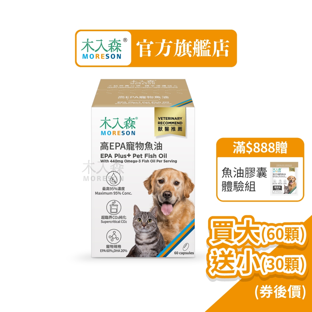 【木入森】限時買大送小 高EPA寵物魚油 60顆/盒|魚油膠囊 貓狗魚油 寵物魚油 寵物保健60顆+30顆x3組再贈萌寵提袋|買大送小(60顆+30顆)搭券使用|60顆x1盒入|60顆x2盒入|60顆x3盒入Vitamins & Supplements木入森Moreson 官方旗艦店