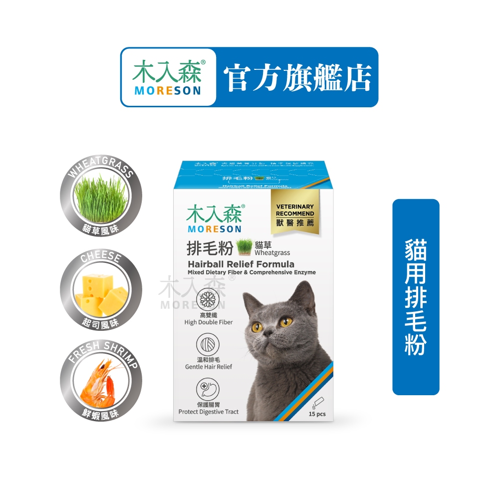 【木入森】貓咪排毛粉 (15包)|比化毛膏更好的選擇|專利纖維與酵素|換毛季必備貓咪保健食品貓草風味15包x1盒入|起司風味15包x1盒入|鮮蝦風味15包x1盒入|起司風味15包x2盒入|鮮蝦風味15包x2盒入|貓草風味15包x2盒入Vitamins & Supplements木入森Moreson 官方旗艦店