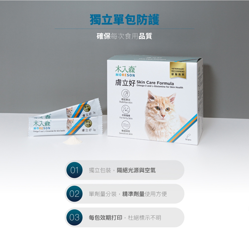 【木入森】貓咪膚立好 (50包)|貓咪皮膚保健食品|高單位魚油 麩醯胺酸|針對貓皮膚敏感 搔癢50包x1盒入|50包x2盒入|50包x3盒入|50包+25包Vitamins & Supplements木入森Moreson 官方旗艦店