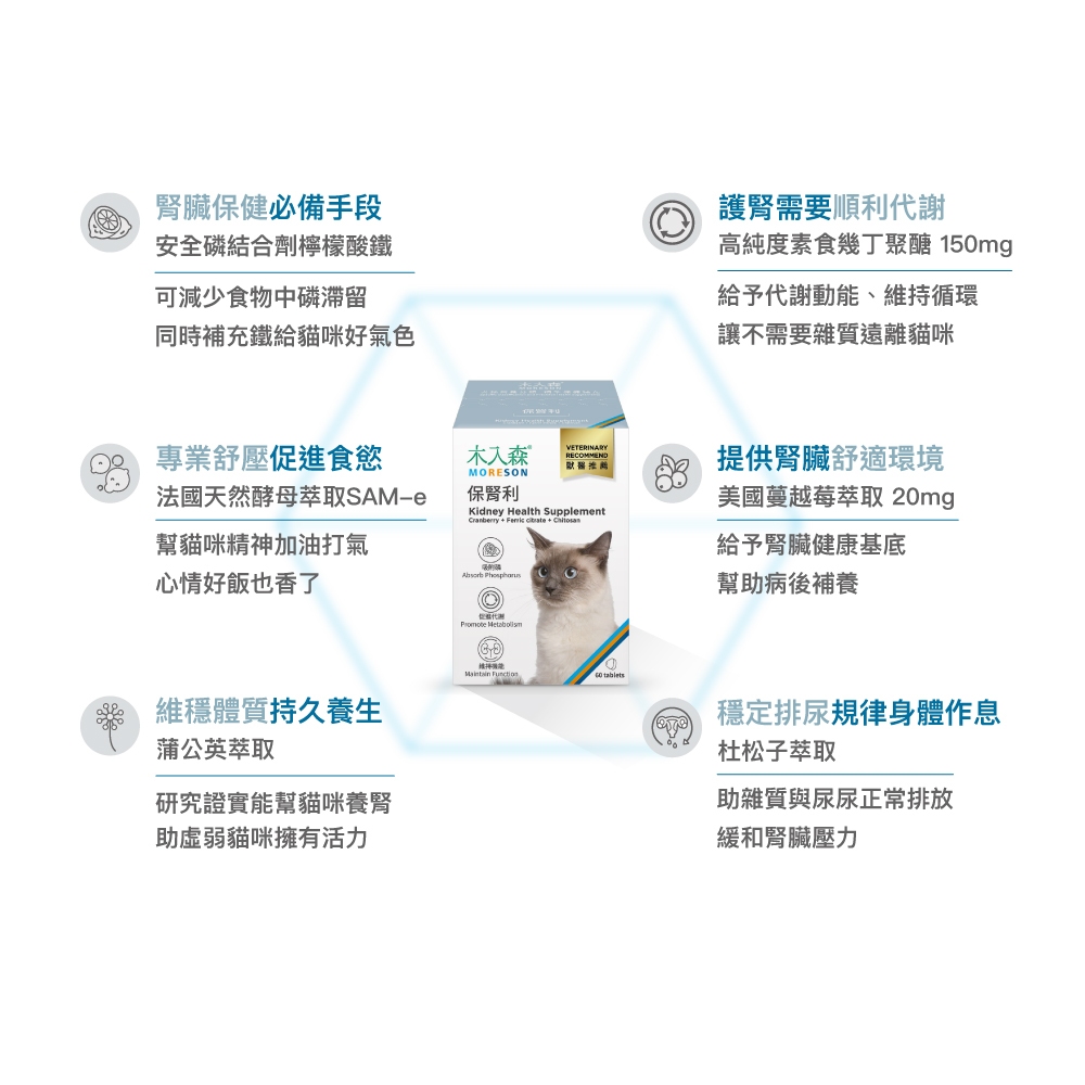 【木入森】貓咪保腎利 (30顆)|貓腎臟保健食品|減少磷滯留|腎臟保健 穩定排尿 促進食慾30顆x2盒入|30顆x1盒入Vitamins & Supplements木入森Moreson 官方旗艦店
