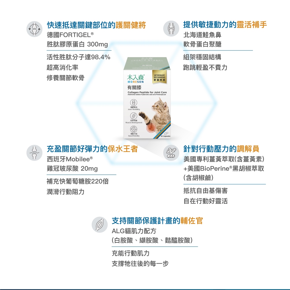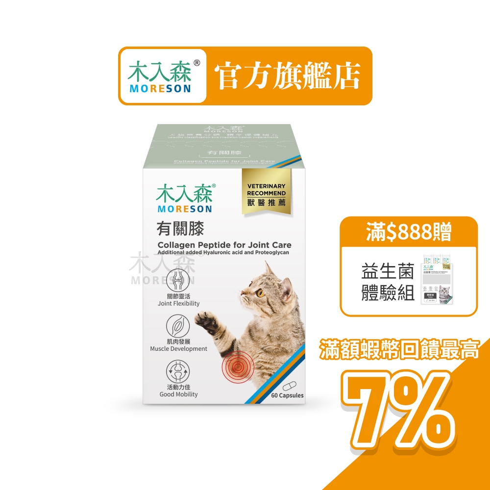 【木入森】貓咪有關膝 (60顆)|貓咪關節保健食品|膠原蛋白 玻尿酸|老貓照護 貓關節保健60顆x1盒入|60顆x2盒入|60顆x3盒入|60顆+30顆Vitamins & Supplements木入森Moreson 官方旗艦店