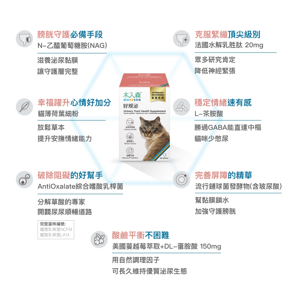 【木入森】貓咪好規泌 (60顆)|貓泌尿道保健食品|貓薄荷 蔓越莓|情緒安撫 遠離排尿卡頓感60顆x1盒入|60顆x2盒入|60顆x3盒入|60顆+30顆Vitamins & Supplements木入森Moreson 官方旗艦店