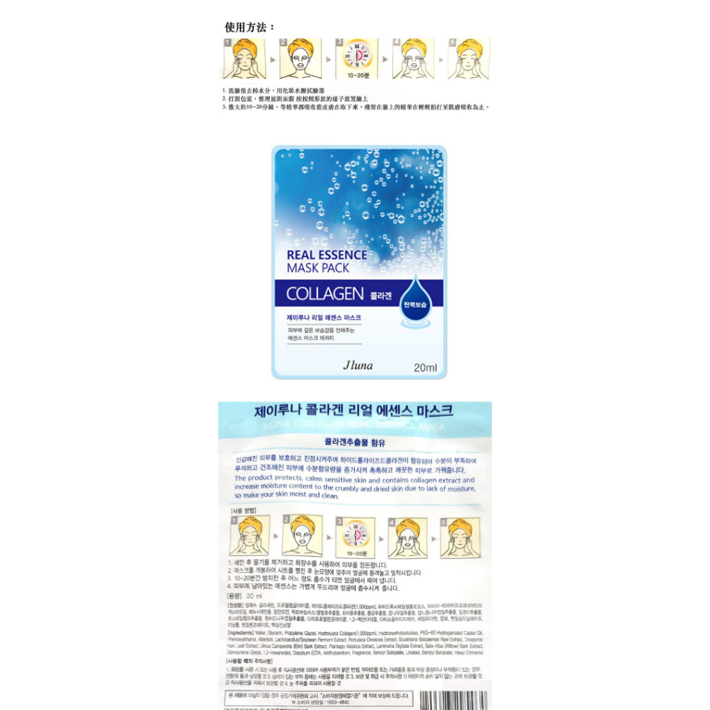 現貨【J luna】Real精華面膜 – 膠原蛋白/紅蔘/蘆薈 20ml【月星球】膠原蛋白面膜/保濕/乾燥肌膚膠原蛋白面膜|紅蔘面膜|蘆薈面膜Face Mask & Packs月星球 Dalnarashop