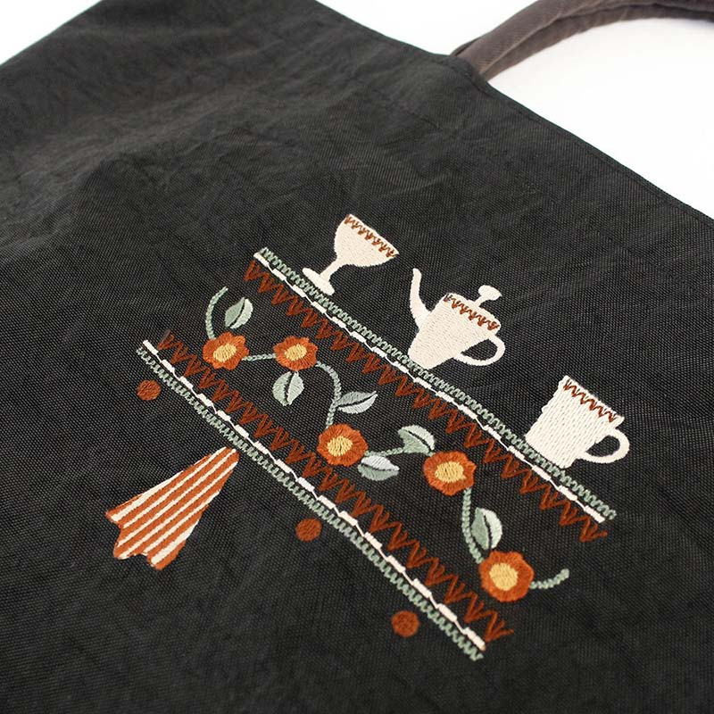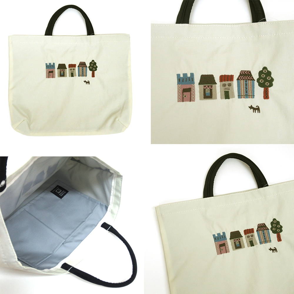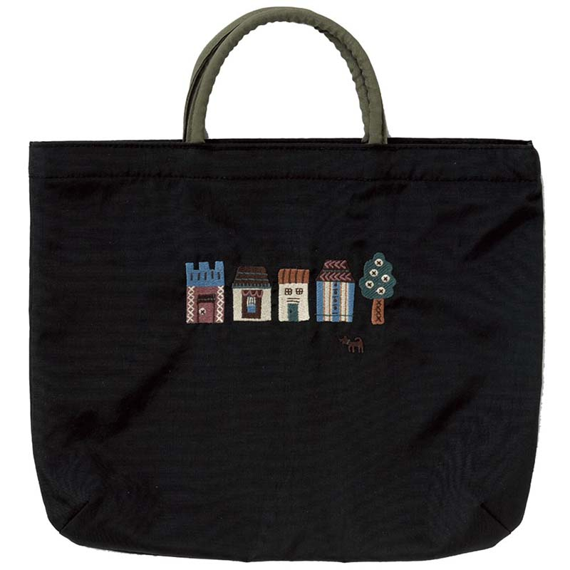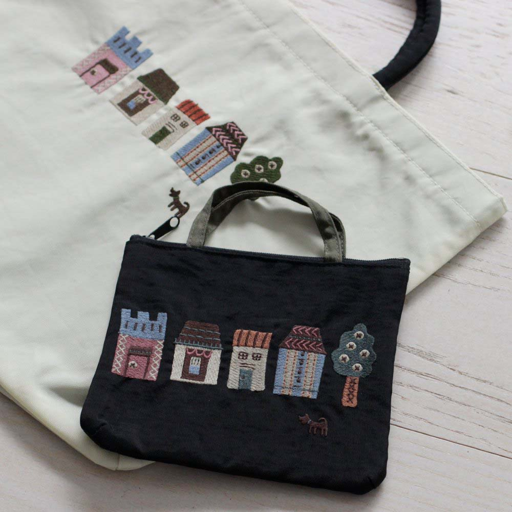 Atsuko Matano 保野溫子 刺繡尼龍 橫式手提袋 共5款 ( 3507-02~3525 )( 3525 ) 藍綠色_花卉|( 3515-01 ) 黑色_小房子|( 3507-02 ) 灰黑_食器棚|( 3511-01 ) 灰黑_我的娃娃|( 3515-02 ) 米白_小房子小徑文化|擁有最多mt和紙膠帶的購物網站