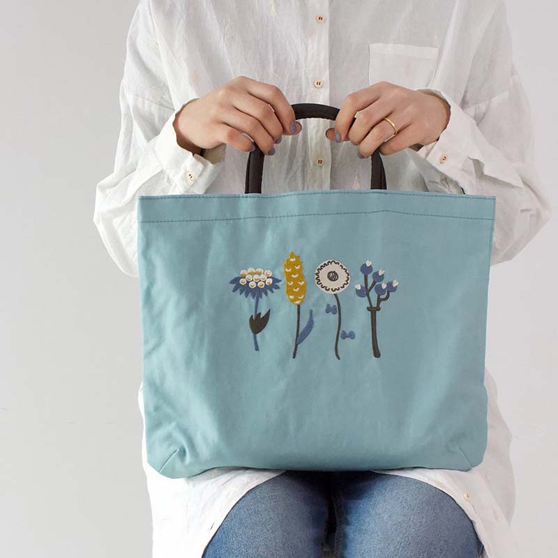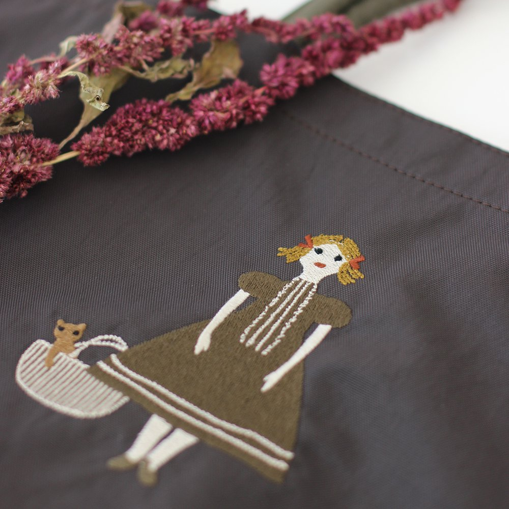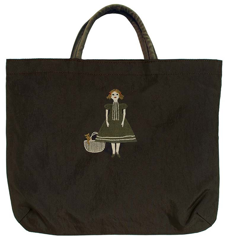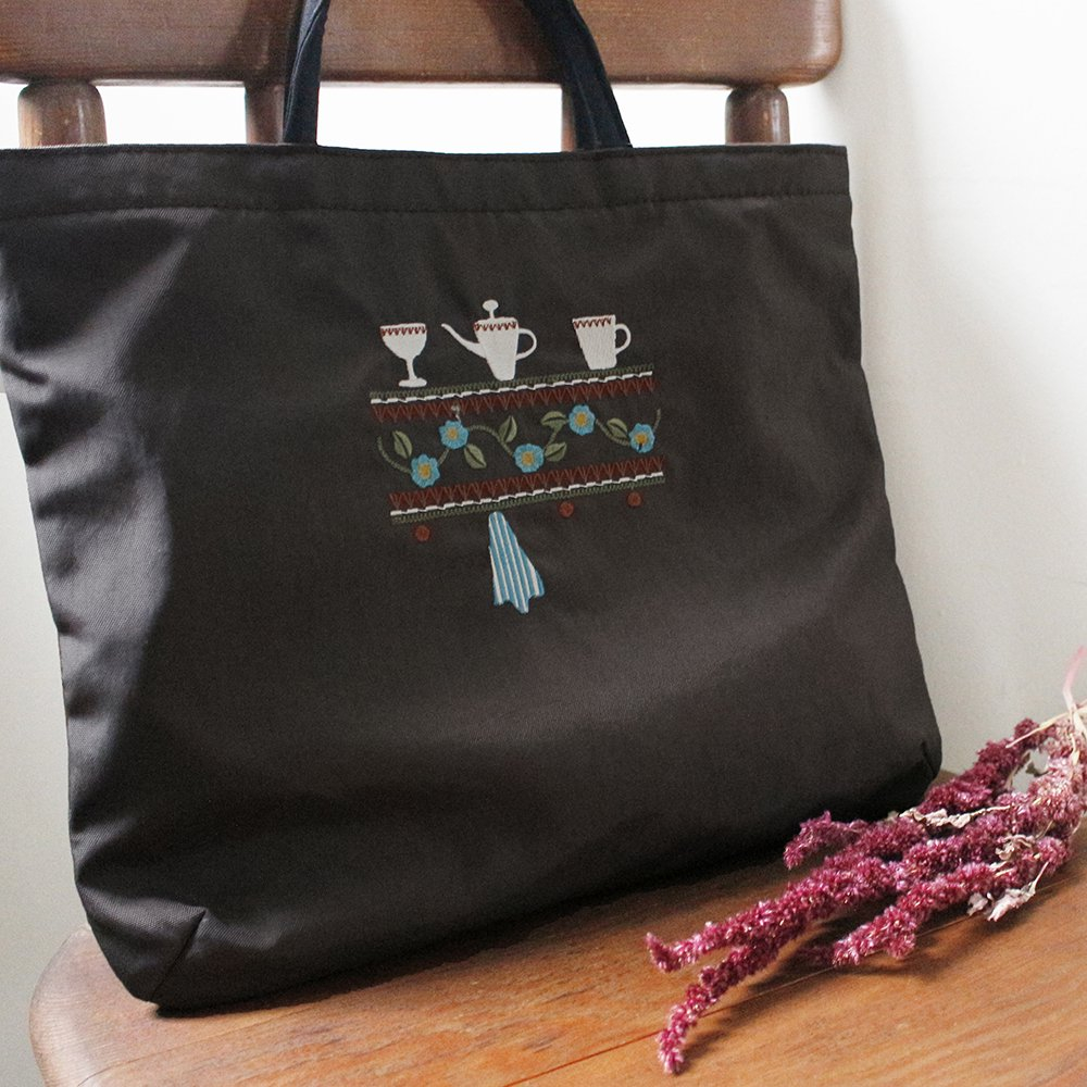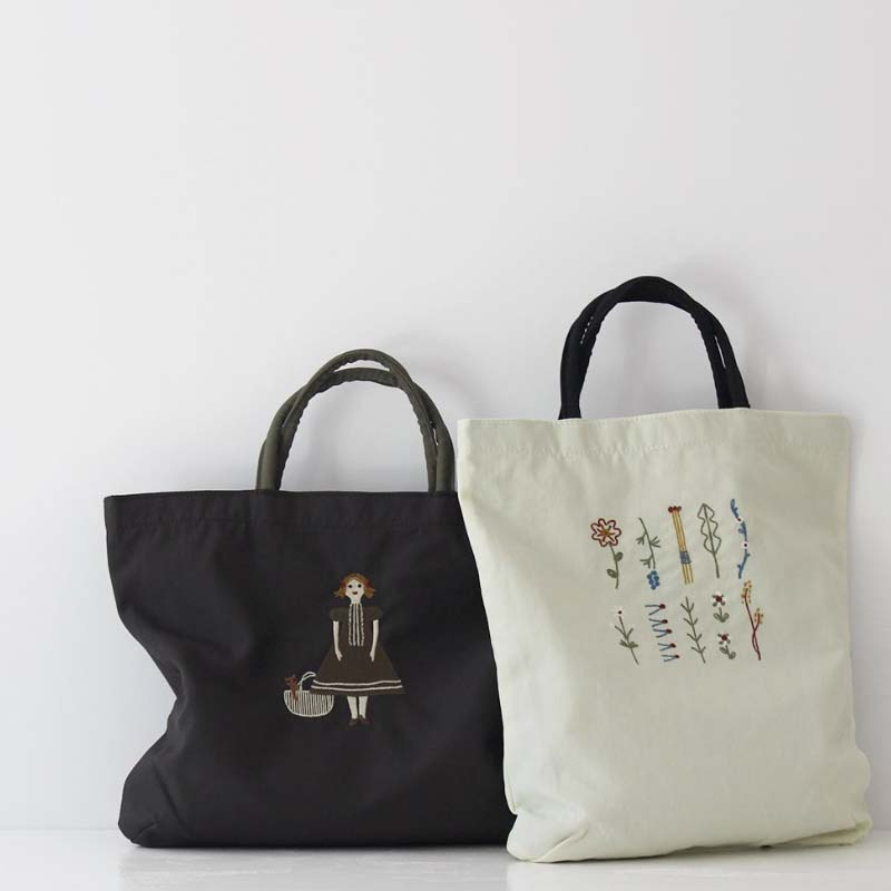 Atsuko Matano 保野溫子 刺繡尼龍 橫式手提袋 共5款 ( 3507-02~3525 )( 3525 ) 藍綠色_花卉|( 3515-01 ) 黑色_小房子|( 3507-02 ) 灰黑_食器棚|( 3511-01 ) 灰黑_我的娃娃|( 3515-02 ) 米白_小房子小徑文化|擁有最多mt和紙膠帶的購物網站