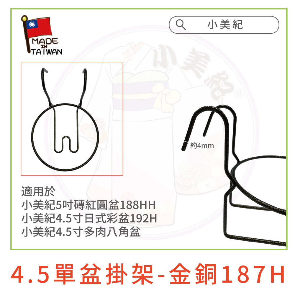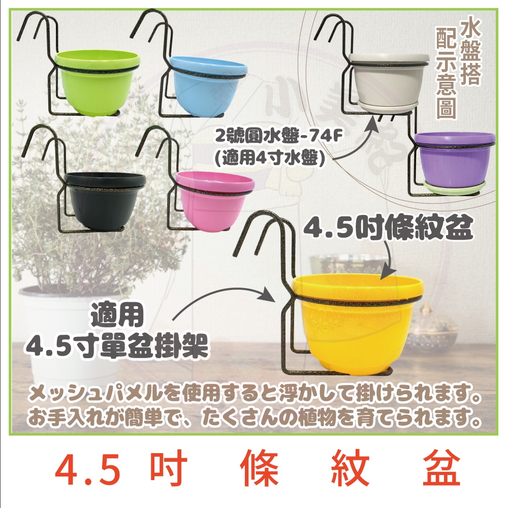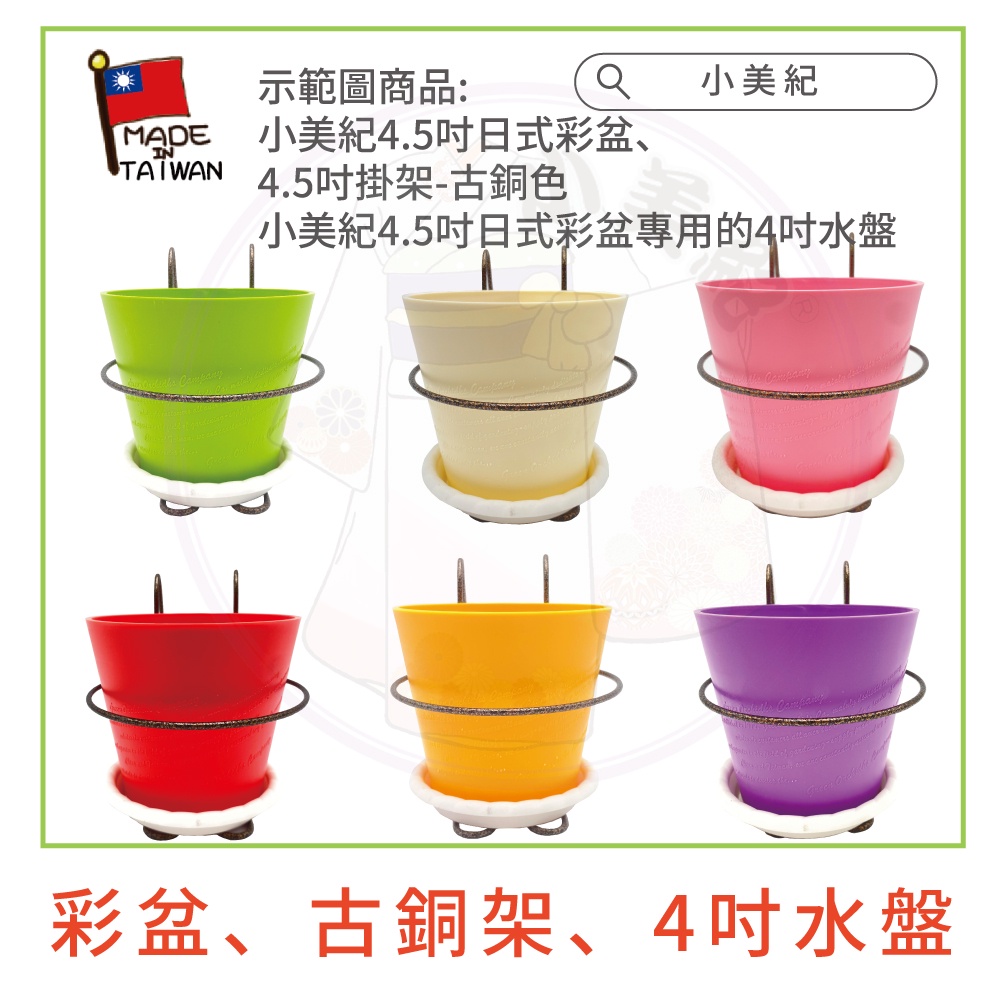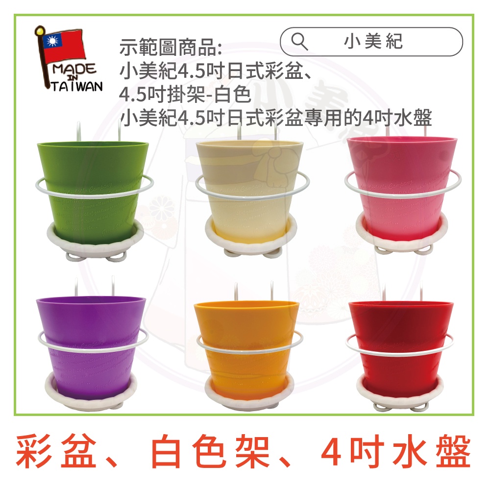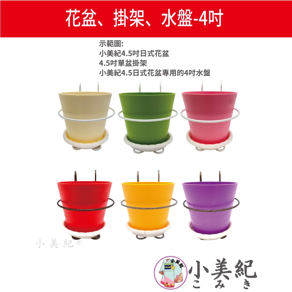 【小美紀】4.5吋高級圓盆、花架、4吋 水盤(園藝資材)掛架 盆架 多肉 4.5寸花盆 園藝掛架 多肉盆 園藝 小美紀4.5寸高級彩盆-紫色(僅花盆)|4.5寸高級彩盆-粉紅色(僅花盆)|4.5吋單盆掛架-白色(僅花架)|4吋水盤 37H-3入裝(僅水盤)|4.5寸高級彩盆-紅色(僅花盆)|4.5寸高級彩盆-綠色(僅花盆)|4.5寸高級彩盆-白色(僅花盆)|4.5吋單盆掛架-金銅色(僅花架)Pots & Planters小美紀 l Komiki