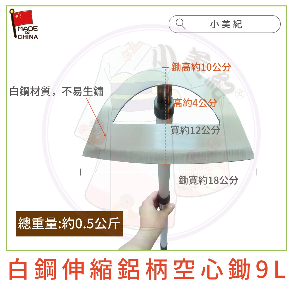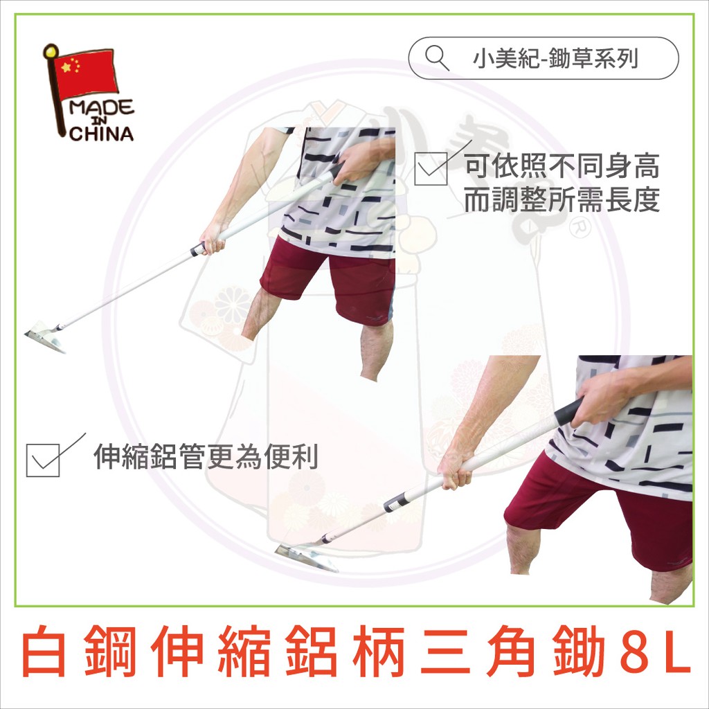 【小美紀】白鋼伸縮鋁柄除草扒(鋤頭系列)兩用鋤 除草機 除草刀 園藝鋤 耙 鏟 五金拔草除草工具三角鋤挖土鋤頭鋤草白鋼伸縮鋁柄三角鋤8L|白鋼伸縮鋁柄空心鋤9L|木柄空心鋤208CGardening Tools小美紀 l Komiki