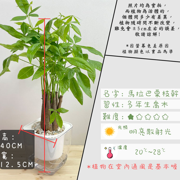 【小品文化】枝幹馬拉巴栗【現貨】4吋透明懶人盆栽 發財樹 加水更方便 觀葉植物 室內植物 水培 花盆 居家辦公盆花枝幹馬拉巴栗+4吋透明盆Plants小品文化-免澆水盆栽