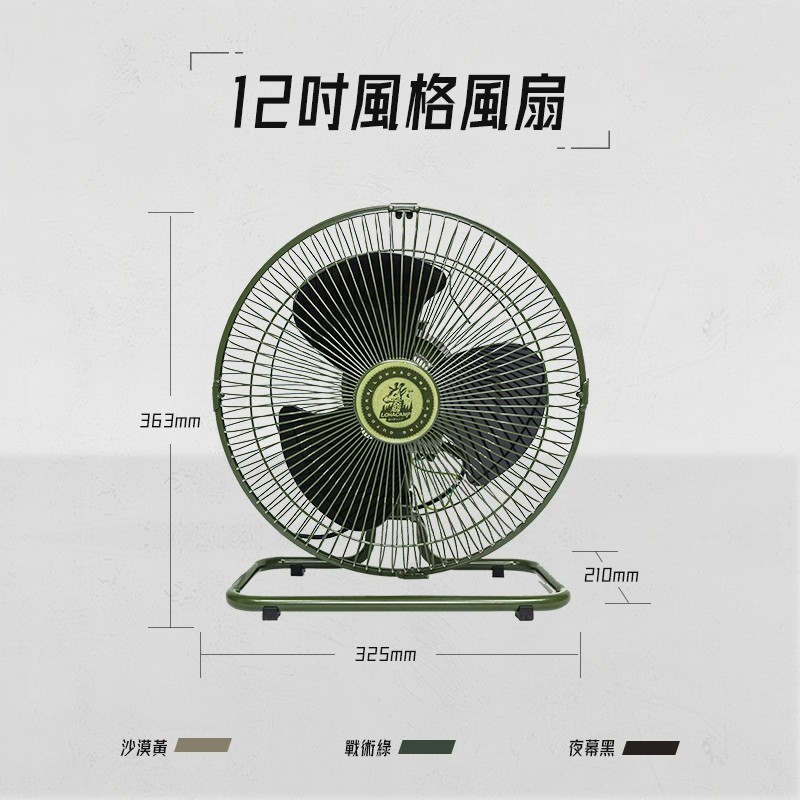 樂活不露 軍風靜音扇 靜音電扇 桌扇 戶外電扇 電風扇 12吋電扇 超商取貨一單一台 風扇沙色|黑色|軍綠Cooling小玩家露營生活旗艦館
