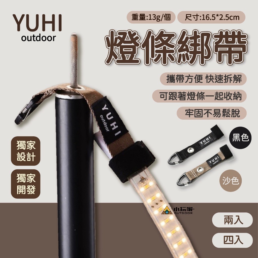 YUHI 燈條綁帶 掛燈條 燈條固定 燈條神器 露營必備 燈條 燈條掛鉤 露營黑色兩入|黑色四入|沙色兩入|沙色四入Camping & Hiking小玩家露營生活旗艦館