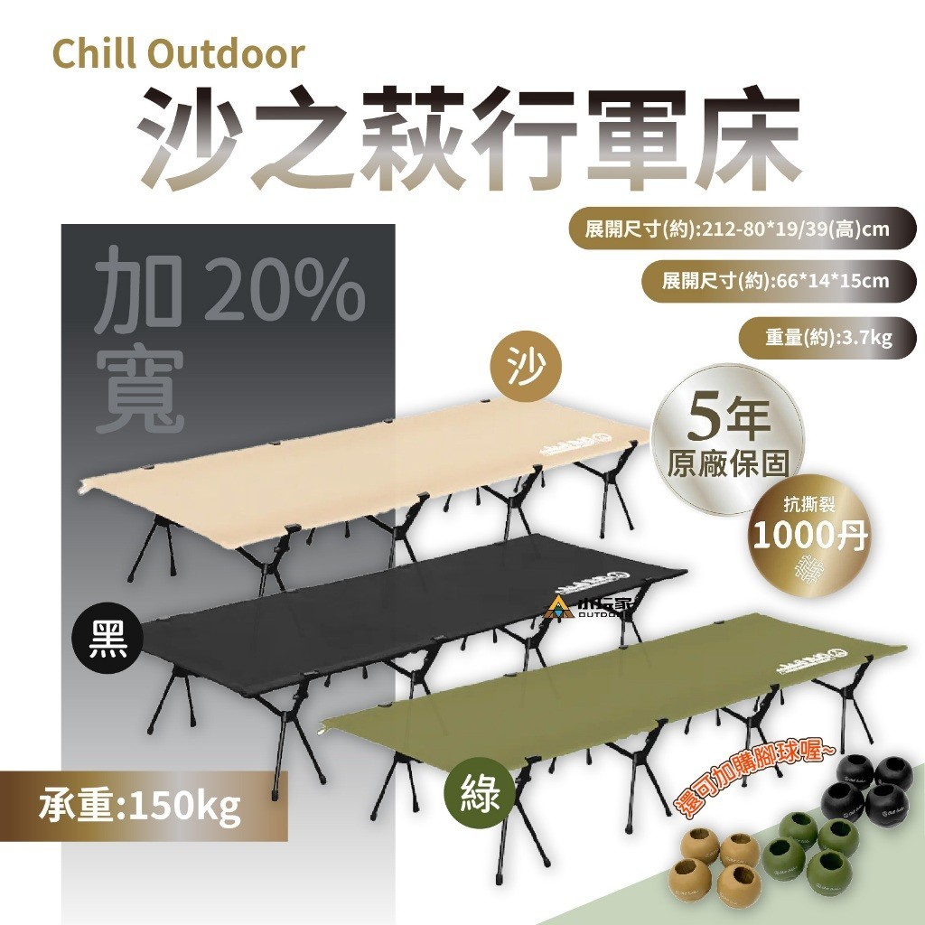 Chill Outdoor 沙之萩戰術行軍床 戶外行軍床 行軍床 加大行軍床沙色行軍床|軍綠行軍床|行軍床床墊|黑色行軍床Camping & Hiking小玩家露營生活旗艦館